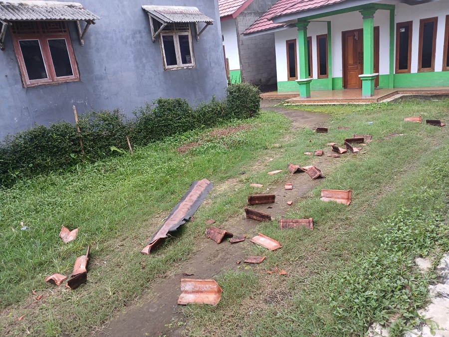 Beberapa atap rumah dilaporkan terlepas dan sebagian dinding mengalami kerusakan akibat terpaan angin.
