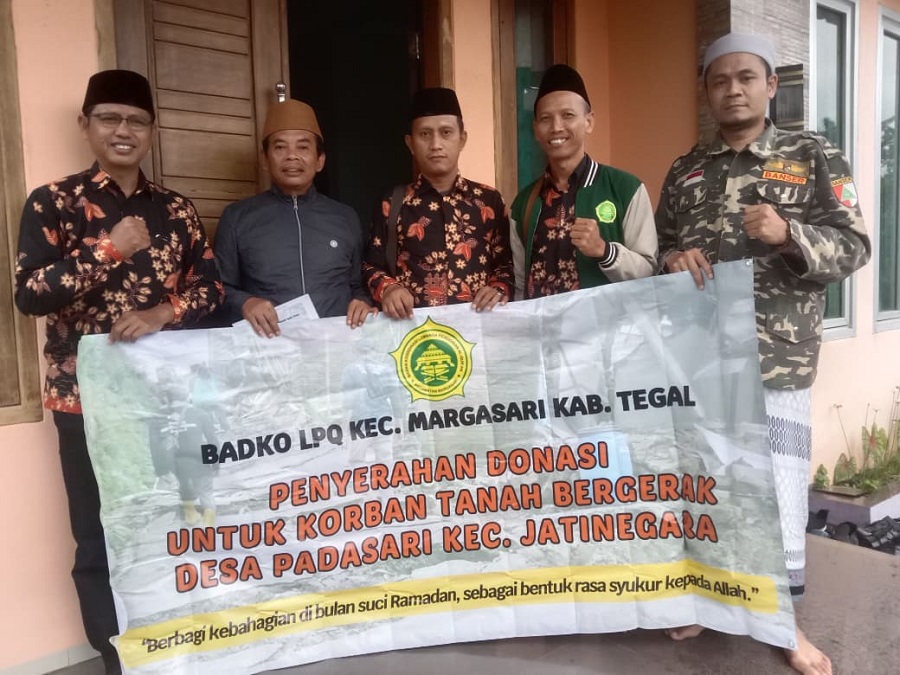 Badan Koordinasi Lembaga Pendidikan Al-Qur’an (BADKO LPQ) Kecamatan Margasari, Kabupaten Tegal, menyalurkan bantuan donasi kepada para guru TPQ yang terdampak bencana tanah bergerak di Desa Padasari, Kecamatan Jatinegara, pada Sabtu (7/3/2026).