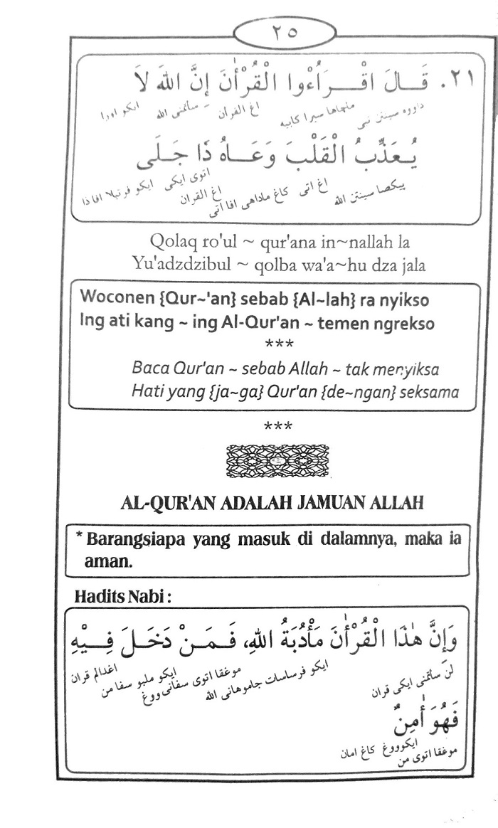 (Wa inna hadzal qur’ana ma’dubatullah, faman dakhola fiihi fahuwa amin)