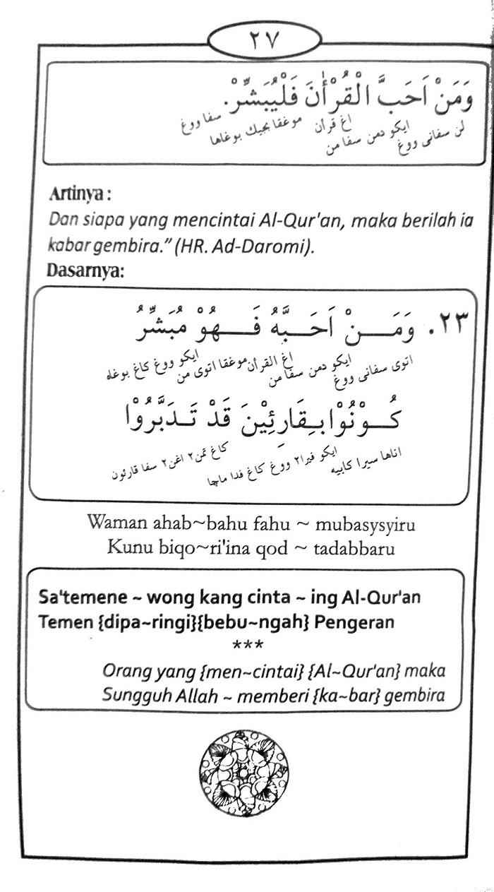 (Waman ahabbal qur’ana falyubasysyir. Waman ahabba fahuwa mubasysyiru, kunu biqo’ri’ina qod tadabbaru)
