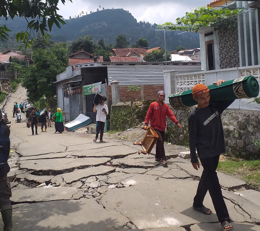 Setibanya di lokasi bencana, rombongan PRNU Sitail dan Banom terdiam menyaksikan kondisi permukiman warga yang porak-poranda akibat tanah bergerak.