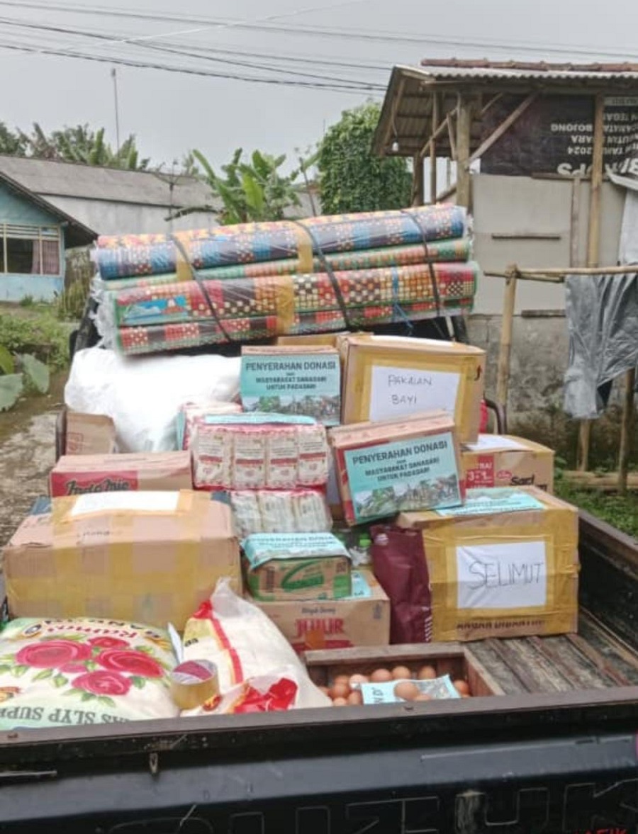 Untuk kebutuhan dapur umum dan konsumsi harian, warga Danasari turut mengirimkan sembako.