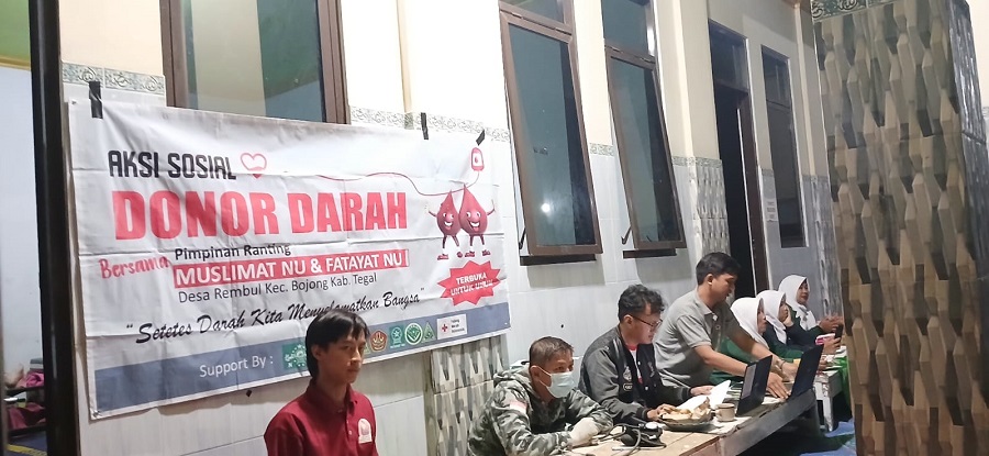 Pimpinan Ranting Muslimat NU dan Fatayat NU (Musfat) Ranting Rembul, Kecamatan Bojong, Kabupaten Tegal, menggelar kegiatan donor darah sebagai bentuk kepedulian sosial kepada sesama, Jumat (6/3/2026) malam. Kegiatan berlangsung di Madrasah Diniyah Takmiliyah (MDT) Attamhidiyah Rembul.