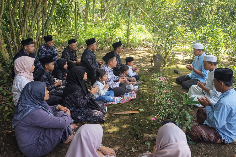 Di lokasi tersebut, keluarga bersama-sama memanjatkan doa dan tahlil untuk para leluhur.